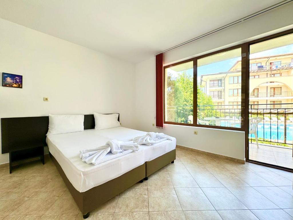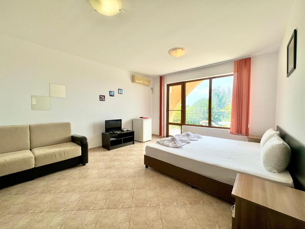"Отличные просторные апартаменты, со всем необходимым для комфортного отдыха. Подальше от шума солнечного берега, при этом воздух свежий, и нет шума от дороги, идеально с детьми, если вы путешествуете на автомобиле. Бассейн и территория чистые, места хватает всем. Очень дружелюбный и внимательный персонал. Уборка была несколько раз за 10 дней. Также рекомендуем местный ресторан, цены умеренные и очень вкусно 👍 Это то место, куда хочется вернуться!"