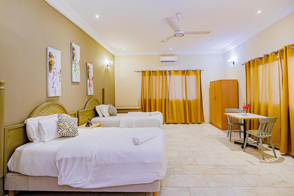 Ubicato a Brufut, l'Ocean Villa Heights offre una piscina riscaldata all'aperto con lettini, la connessione WiFi gratuita e biciclette gratuite. L'Ocean Villa Heights ospita un universo culinario di cucina locale, attrezzature per il barbecue e un bar con una scelta di bevande. L'Ocean Villa Heights include inoltre un centro business, servizi per riunioni, zona termalezi per baltresìtti, un salotto in comune e un deposito bagagli. In loco e nei dintorni potrete praticare varie attività, tra cui la pesca e il minigolf. Il area di sosta è gratuito. L'Aeroporto di Banjul dista 12 km ed è raggiungibile, su richiesta, tramite un servizio di navetta aeroportuale.