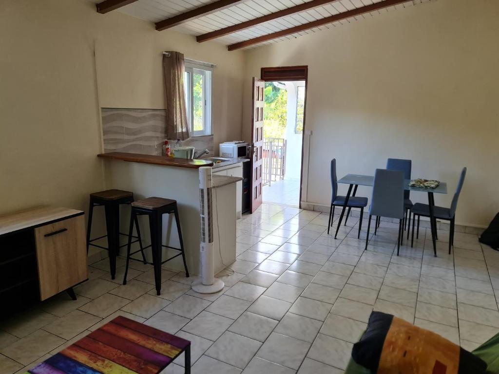 "Appartement très pratique au rdc da la maison avec une place de parking Lit confortable :-) Très proche de la soufrière et des commerces"