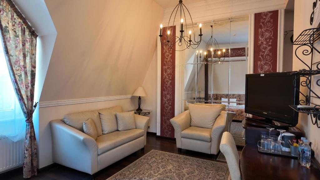 "Lovely, romantic and clean room with the best location in Jurmala. The room's jacuzzi was a nice surprise and definitely added to the luxury feel. Also nice with a sofa, fridge and kettle in the room. Beautiful old house with a nice view over the main street - windows in two directions! Just a short walk from the beach. Clean air and functioning air conditioning."